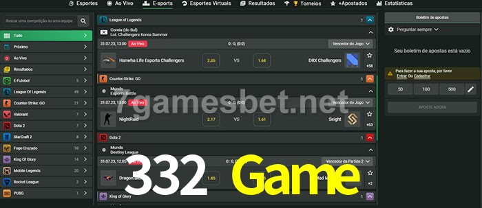 A aposta 332 Game oferece aos jogadores a experiência mais conveniente de apostas em eSports!
